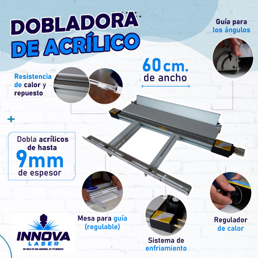 Doblador de acrílicos, puede doblar hasta 9mm de espesor, 60cm de ancho, Guía para ángulos, Sistema de enfriamiento, Mesa regulable, Regulador de temperatura , de regalo una repuesto de resistencia de calor