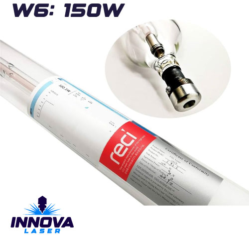 Tubo Laser CO2 INNOVA LASER PERÚ, Modelo W6, pico máximo 150 Watts, largo 1400mm, diámetro 80mm. Ideal para maquinas laser con área de trabajo de 1300mm x 900mm en adelante