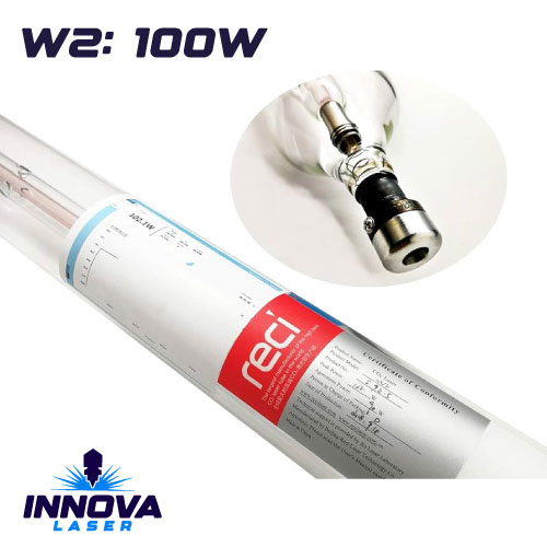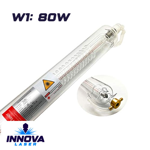 Tubo Laser CO2 INNOVA LASER PERÚ, Modelo W2, pico máximo 100 Watts, largo 1200mm, diámetro 80mm. Ideal para maquinas laser con área de trabajo hasta 1000mm x 600mm