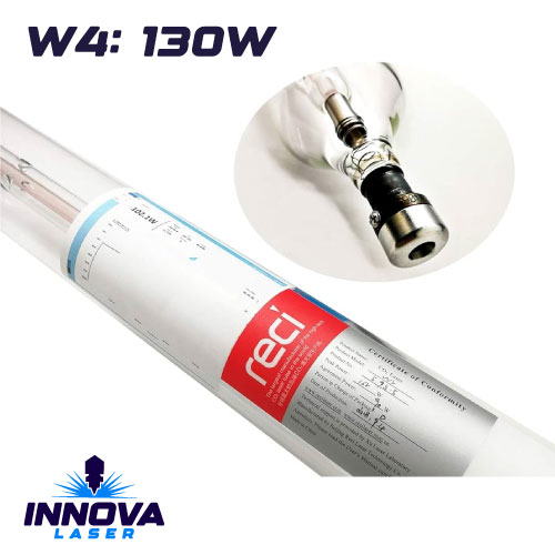 Tubo Laser CO2 INNOVA LASER PERÚ, Modelo W4, pico máximo 130 Watts, largo 1400mm, diámetro 80mm. Ideal para maquinas laser con área de trabajo de 1300mm x 900mm en adelante